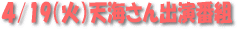 と、ここでもう一度4/19(火)の今のところわかっている天海さんの出演番組を書いておきます。各方面で“離婚弁護士2 SP”などの放送時間が違うと思いますので、番組欄等で確認してくださいね。