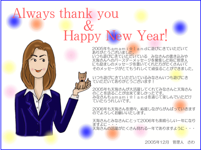 お正月もBBSに遊びにきてくださいね、私も時間があるときにどんどん書き込みしていきますので、天海さんの情報チェックもしてくださいね。