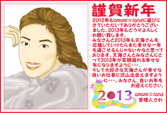 2012年もみなさん、本当にありがとうございました。2013年も天海さんとみなさんにとって幸せな新たな一年になりますように、健康でありますように・・・。