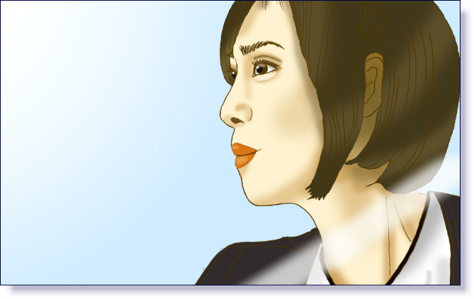 6話では鶴田さんと電話をしながら自殺した女性のマンションに真壁さんが行った時にベランダのテーブルに携帯を置いて外を見て考えている横顔を描きました。