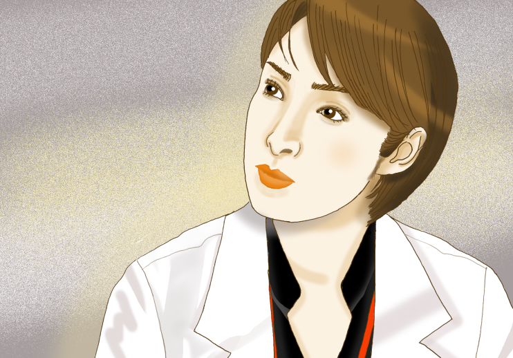 深山先生を恨んでいる大澤先生がエレベーターに細工をして閉じ込められたエレベーターの中で深山先生に復讐をしようとするシーンは、うわぁ~~~って思ったのですが、その時に同乗していた入院患者さんの容態がおかしくなって緊急対応をすることになった深山先生が刃物を持った大澤先生から責められたときに大澤先生の記憶違いだと説明するときがとても凛々しくてすてきだったのでイラストにしてみました。