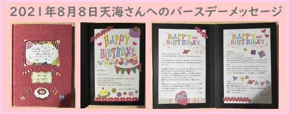 ずっと参加してくださっているファンの方もいて、途中から参加してくださっている方もいて毎年、大好きな天海さんの生まれた大切な日を一緒にお祝いできていることが本当に嬉しいな、幸せだなと思っているのですが、コロナ渦になってからより一層そう感じるようになりました。